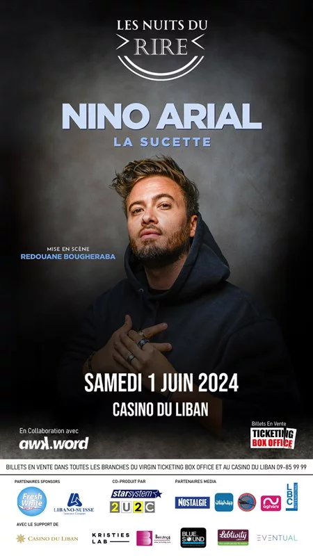 We are happy to announce Our new concept Les Nuits du Rireand our first show on 1st June 2024: NINO ARIAL stand-up LA SUCETTE produced by Redouane Bougheraba @casinoduLibanIn collaboration with AWK.WORD comedy cluba word about NINO« En 2016, alors qu'il mène une vie tranquille de bureaux, il fait le pari de tout lâcher et de se lance sur YouTube. 110 millions de vues plus tard, il décide encore une fois de se mettre en danger en brisant le 4ème mur et monte sur scène.