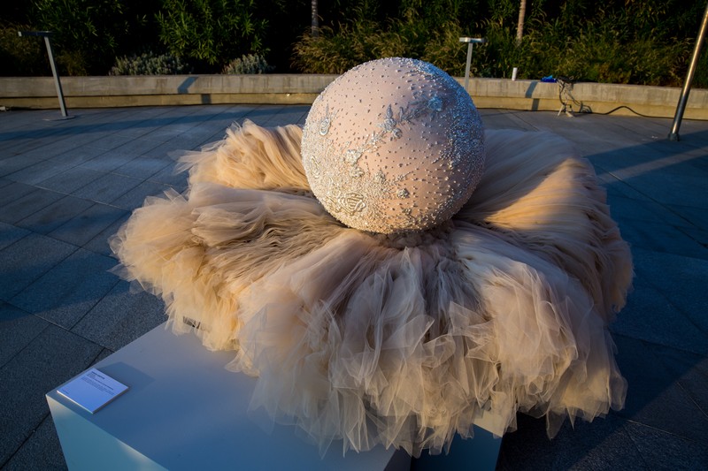The evening buzzed with conversation and excitement around the pieces, which include multidisciplinary artist Sandra Macaron's Aal Sekkin, featuring a gold butcher knife cutting through a metallic sphere representing Earth, and couturier Krikor Jabotian's Couture Ball, embellished with silver threads, sequins, and pearls akin to a bridal gown. Designer Tamara Barrage's Nucleus celebrates birth, life and new beginnings using cold porcelain and metal, the sphere cracked open to reveal the mystery inside.