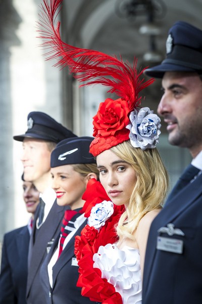 She said: "I wanted to create a design which captured the line of the iconic British Airways logo and really communicated air travel and the link between Britain, British Airways and fashion. Suki is the perfect English rose to model the piece.