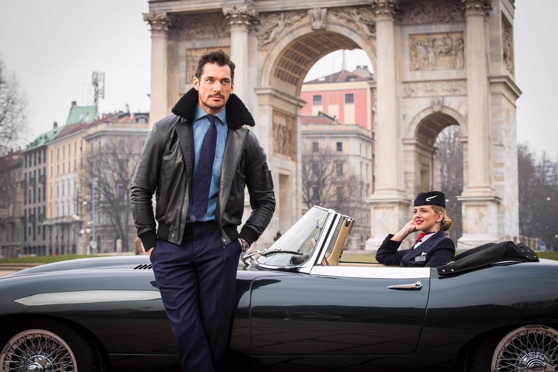 Later in the day, it was the turn of fashion royalty David Gandy to turn heads once more in the Italian fashion capital as British Airways sent him out for a spin in a vintage Jaguar E-Type with a British Airways pilot in tow.