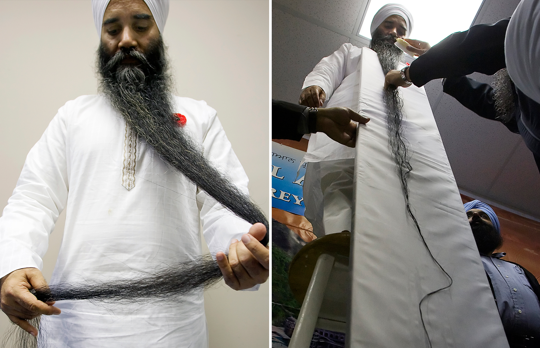 What: The longest beard measures 8 feet 2.5 inches (2.495 m). When first recorded on the TV show "Lo show dei record" in March 2010, the beard measured 7 feet 9 inches (236.22 cm). When it was re-recorded for a U.S.-based TV show in September 2011, it had grown much longer.